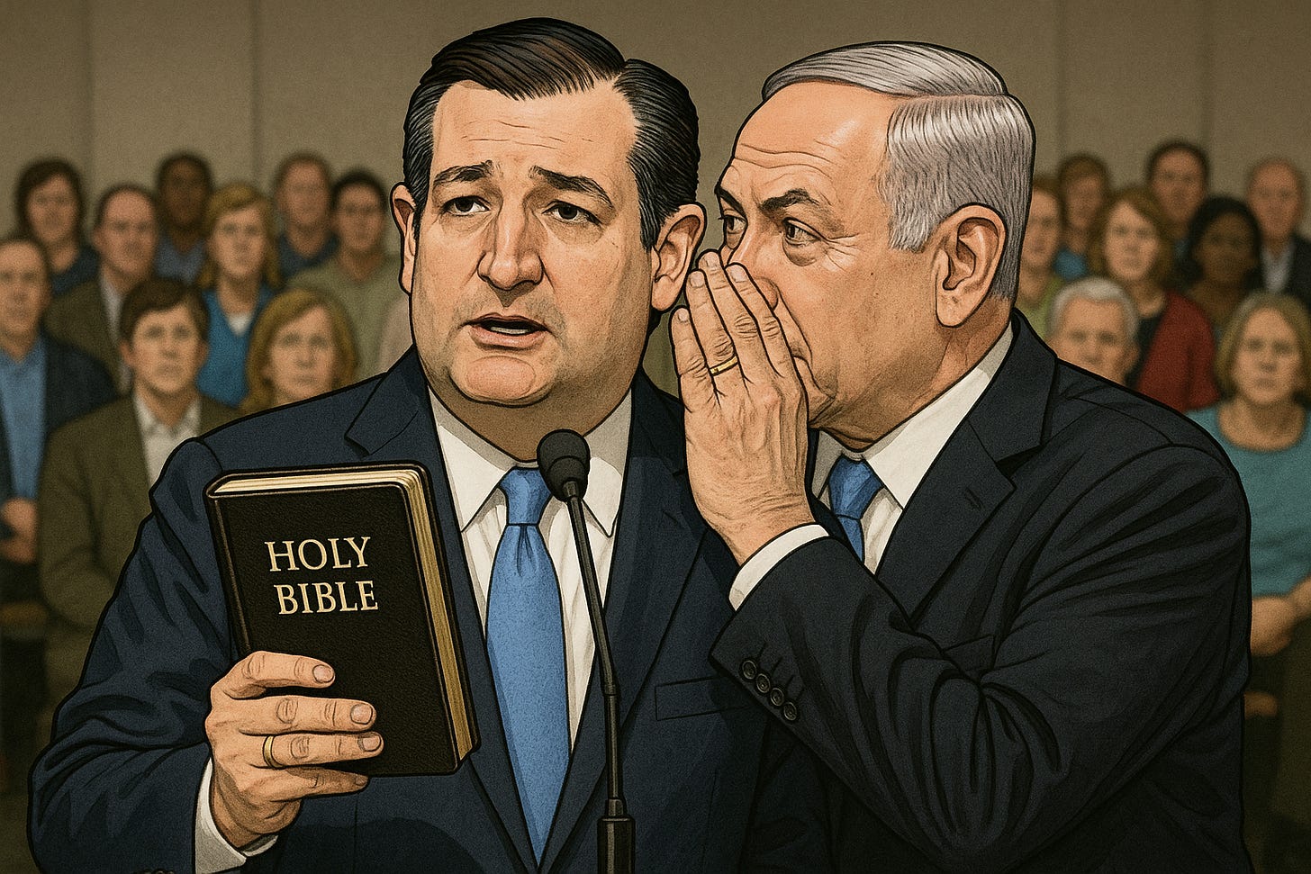 Ted Cruz recently preached to a room full of nearly a thousand pastors on a Potemkin Tour of Israel, whose plane tickets and hotels stays were paid for American tax dollars laundered by the Israeli government through Friends of Zion, an Israeli propaganda organization masquerading as a Christian ministry. And when I say Ted Cruz preached, I mean he preached. It was every bit a sermon as what you heard in Church on Sunday, probably more so if you attend a typical evangelical Big Box church where the pulpit has been replaced with a preaching stool.