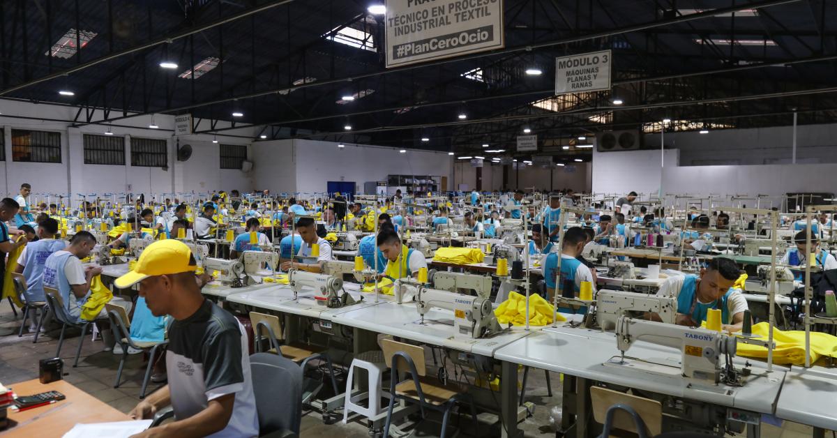 In 2021, Bukele initiated a sweeping crackdown on gangs and crime. In a matter of weeks, 87,000 people were arrested. La Esperanza’s prison population quickly surged from 6,000 to nearly 30,000. Now, the inmates are enrolled in 24/7 around-the-clock shifts of training – and labor that boosts the bottom line. It’s called the “Zero Leisure Plan.”