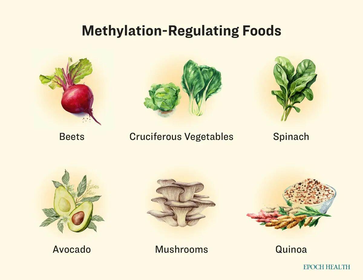 Nutritionist Tsai Yi-fang from Taiwan’s Keyi Nutrition Consultation Center told The Epoch Times on the “Health 1+1” program that methylation is like a toggle switch for your DNA. If you add a methyl group, a gene’s function might shut off; if you remove one, that function flips on. For instance, heavy methylation of tumor suppressor genes could impair their ability to suppress cancer. On the flip side, low methylation of inflammation genes can ramp up your body’s inflammatory response.