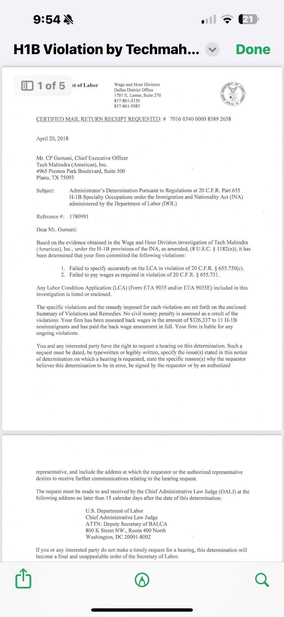 A Pattern of AbuseThe bodyshop system is enabled by H-1B visas; they exhibit a consistent pattern of illegal and unethical behavior. There is evidence to suggest that Trump’s recent H-1B reforms are putting pressure on their operations. However, there is no reform possible when it comes to this level of entrenched corruption. H-1B visas must be ended in order to end these abuses, and the corporations that facilitated these labor abuses must be given corporate death penalties.