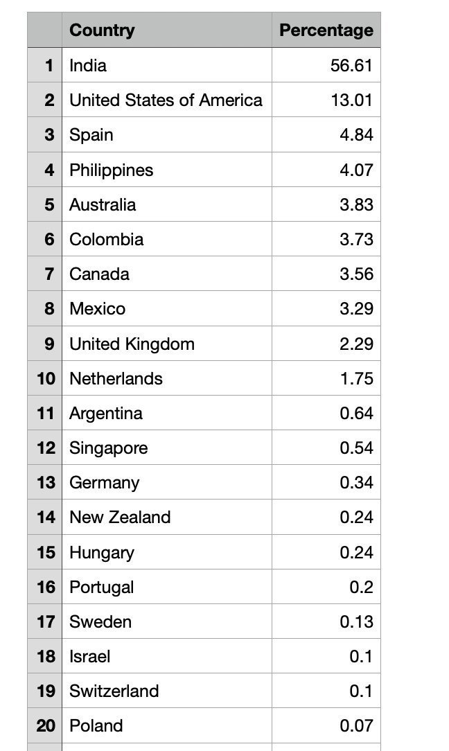 Insiders have informed me to the extent in which Cognizant and other bodyshops preference Indians—specifically Indians from India—over all other nationalities and ethnicities. Here is an internal spreadsheet on the national origins of Cognizant employees: