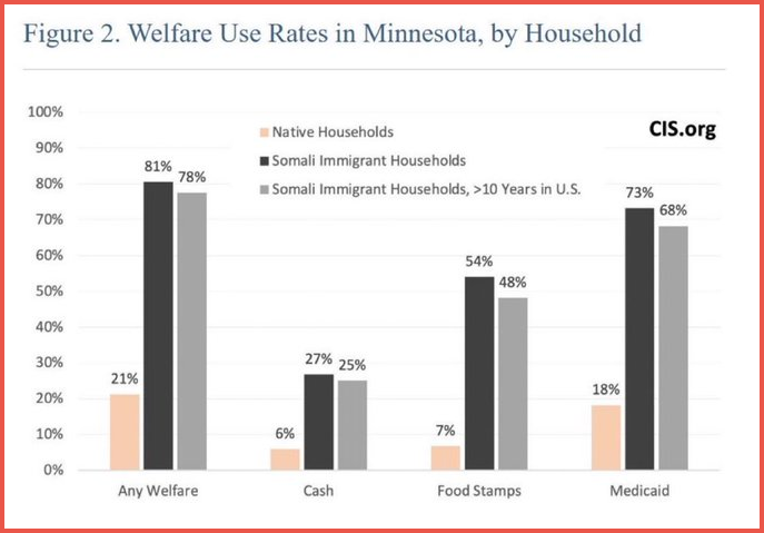 II. Welfare Participation in Minnesota by Household TypeA breakdown of welfare use shows large gaps between native households and Somali immigrant households, including those residing in the U.S. for over 10 years.