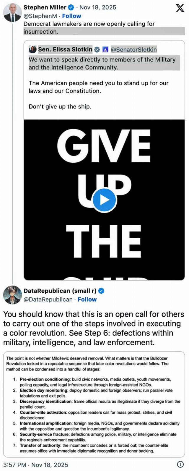 There are surely a great many in our military, stealthily holding those political beliefs and doing what they can to subvert the lawful, constitutional authority of President Trump and SecWar Hegseth.