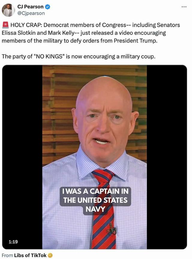 "Elected Democrats just released a video encouraging members of the military to commit treason and defy orders from Trump and Hegseth," wrote the conservative account Libs of TikTok.