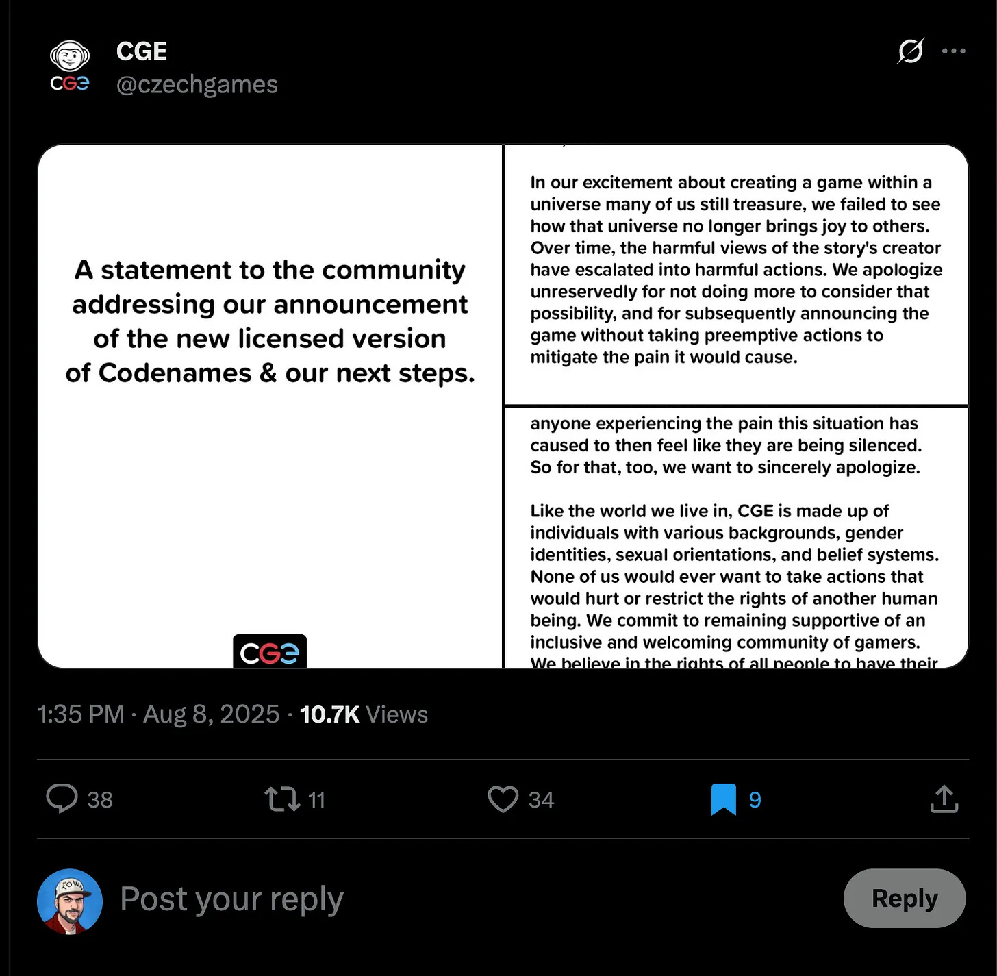 Last year saw the cancellation of a new edition of Harry Potter: Codenames. While the last game seemed to come out unscathed, this iteration received a pile-on on BlueSky, harassing the company, Czech Games, about producing this new version.