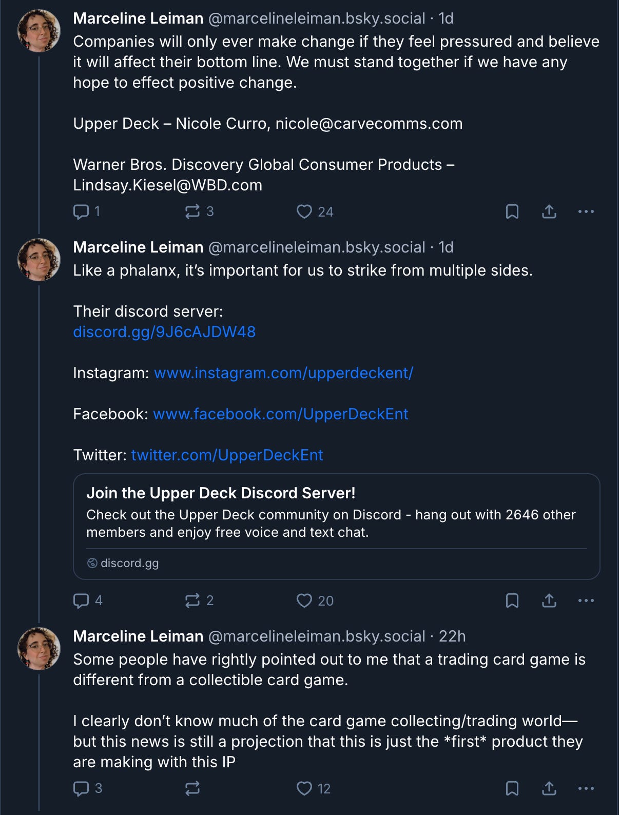 Board game designer Marcine Leiman, who is a man pretending to be a woman, started to rile the mob on BlueSky to harass Upper Deck: