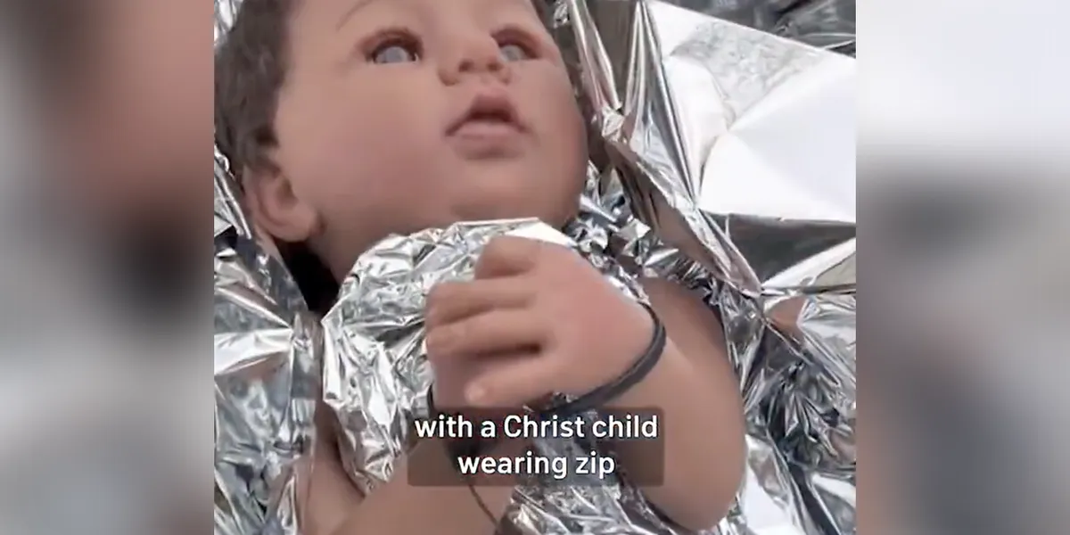 Baby Jesus is wrapped in a thin blanket resembling aluminum foil, which the church said is a reference to the emergency blankets used in detention facilities.