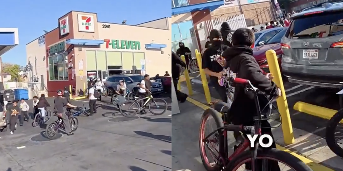 Bike gang of teens ransack 7-11 in Gavin Newsom's lawless Los Angeles, aren't smart enough to cover their faces