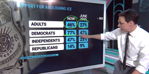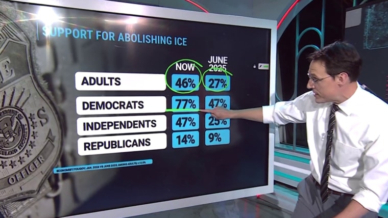 With the recent incidents involving ICE agents across the country raising alarm, NBC News' Steve Kornaki breaks down polling on where Americans stand on their beliefs about ICE and the use of their tactics. Jan. 16, 2026
