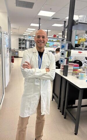 Remilk co-founder and CTO Ori Cohavi at the food tech startup’s R&D lab in Ness Ziona. (Courtesy)