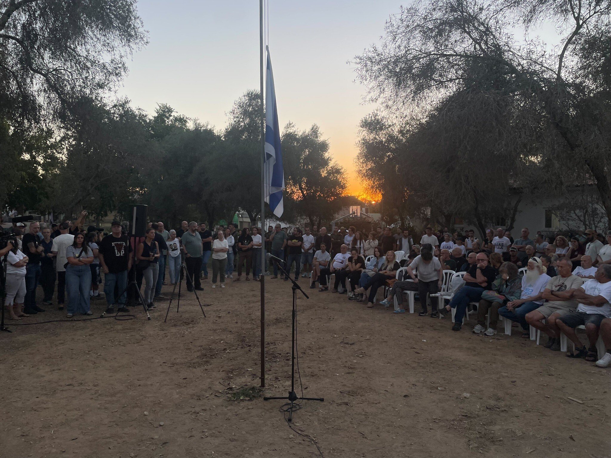 Mourners mark Oct. 7 anniversary at Kfar Aza, stand silently at moment when attack began