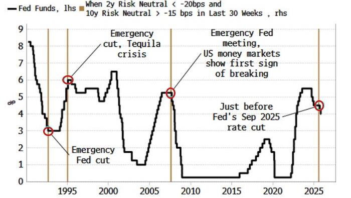 The Federal Reserve’s interest-rate cut in September was preceded by a rare move in the risk-neutral yield curve that, in recent decades, has almost always only occurred around unscheduled meetings and before significant moves in monetary policy.